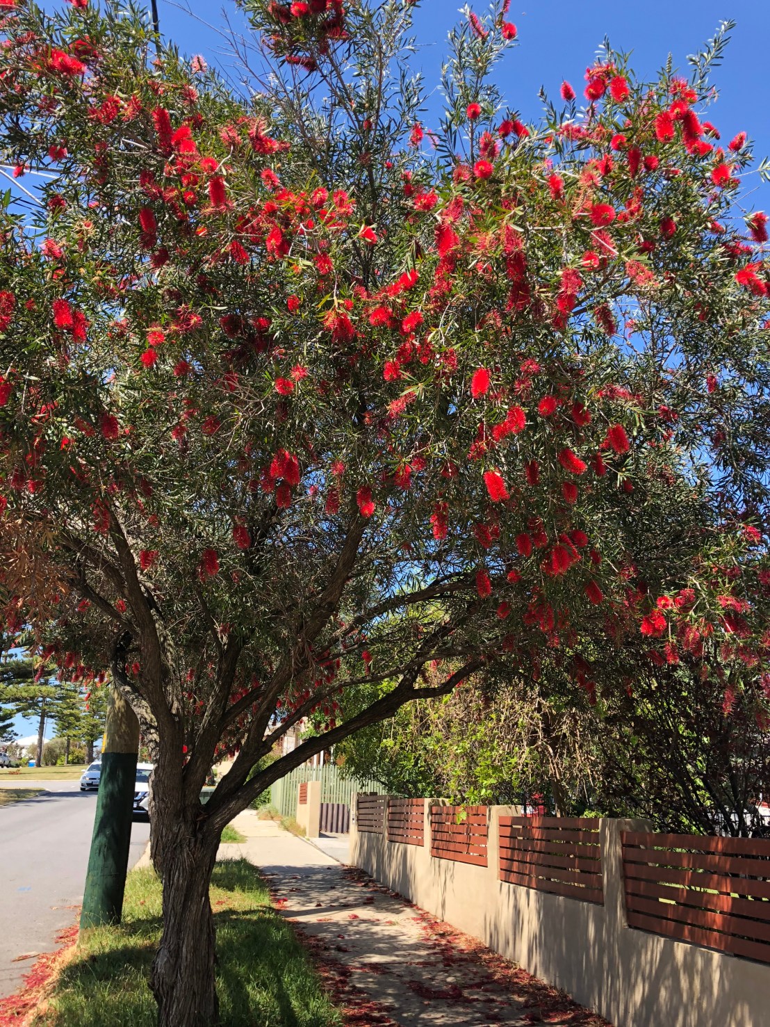 It is definitely spring here in Fremantle, a couple of photographs below to show the colours and brightness today, it’s due to climb to 28C on Wednesday then the weather changes again to rain and clouds. The garden is rather chaotic, when I have the energy I’ll be out weeding for short periods of time, that’s allowed as long as I wear gloves to prevent any injuries, bare feet definitely not allowed either particularly outside.