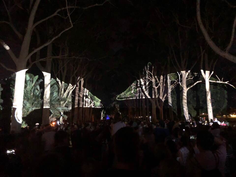 Boorna Waanginy was a light and narrative with music show up in King’s Park, with Noongar stories and images projected onto the trees. The themes were around the Noongar stories of the land, the birth of Australia, and a really strong environmental message. Very sobering, to consider the changes to this ancient land in just the last few decades.
