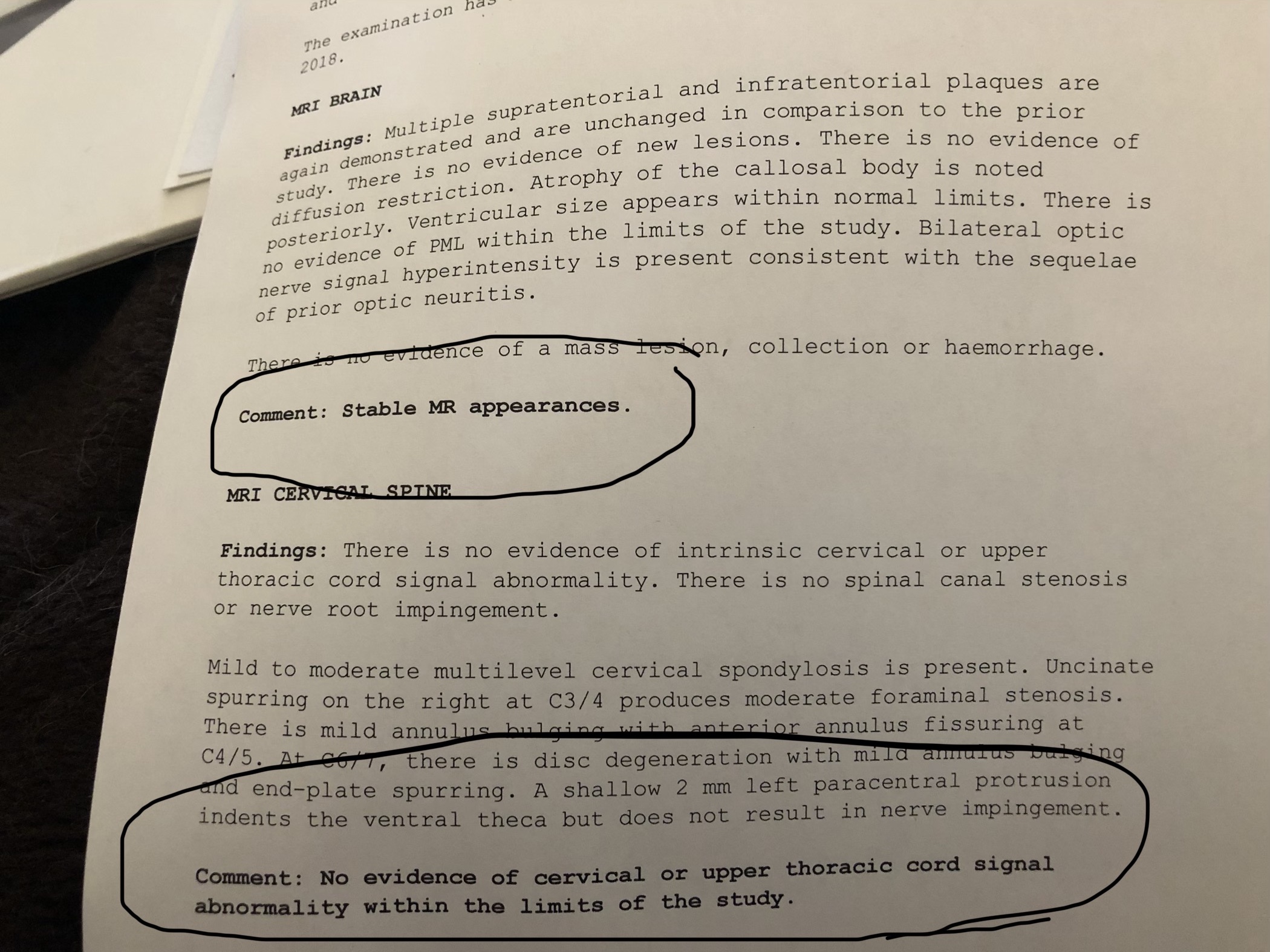 However, as I’ve stated before, I am seeing ongoing improvements. Therefore I am getting much more cautious about being MRIs as the only tool to use for MS. I’m going to quote some paraphrased words by one of the guys on the FaceBook forums, while I am unsure if I completely agree he has some very good points.