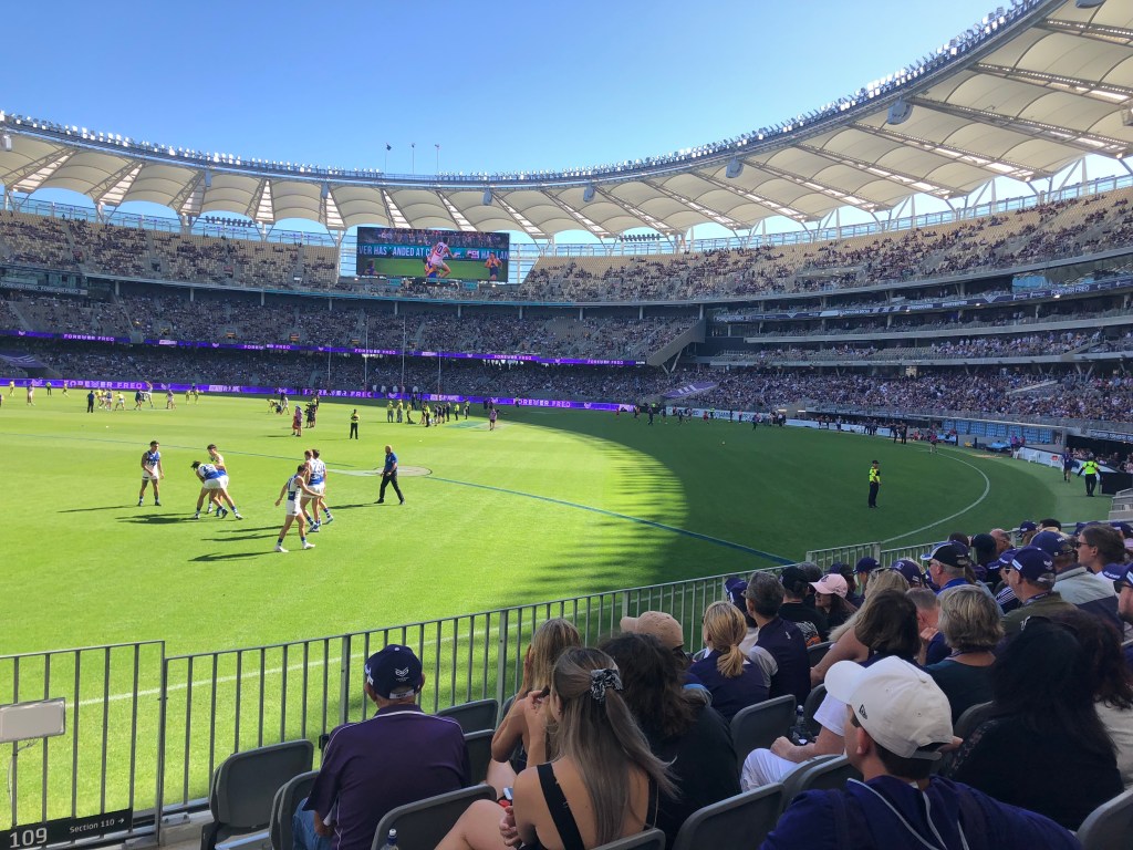 For a complete contrast, I was at the Dockers football match on Sunday, drinking a beer, watching my beloved team win the match. It was a match we’d no expectation of winning, so to win extremely well was a pleasant and welcome surprise.