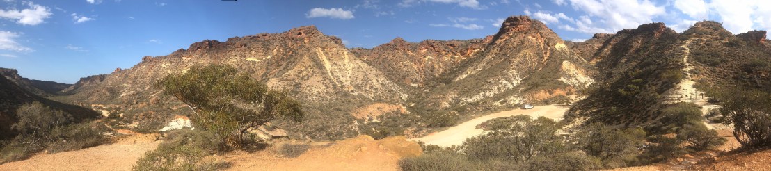 Hiking around gorges cut by water and millennia into the ranges. Being informed about how all the layers of colour formed, by my own geologist guide ! Watching as the colours changed in the late afternoon light.