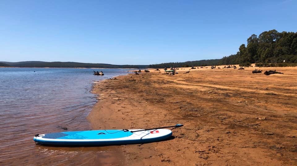 Yes, camping again and it’s so pleasant to be out with the camper trailer again. Not exactly a wilderness camp, but on the banks of Wellington Dam with clear, fresh water on which to paddle board around.