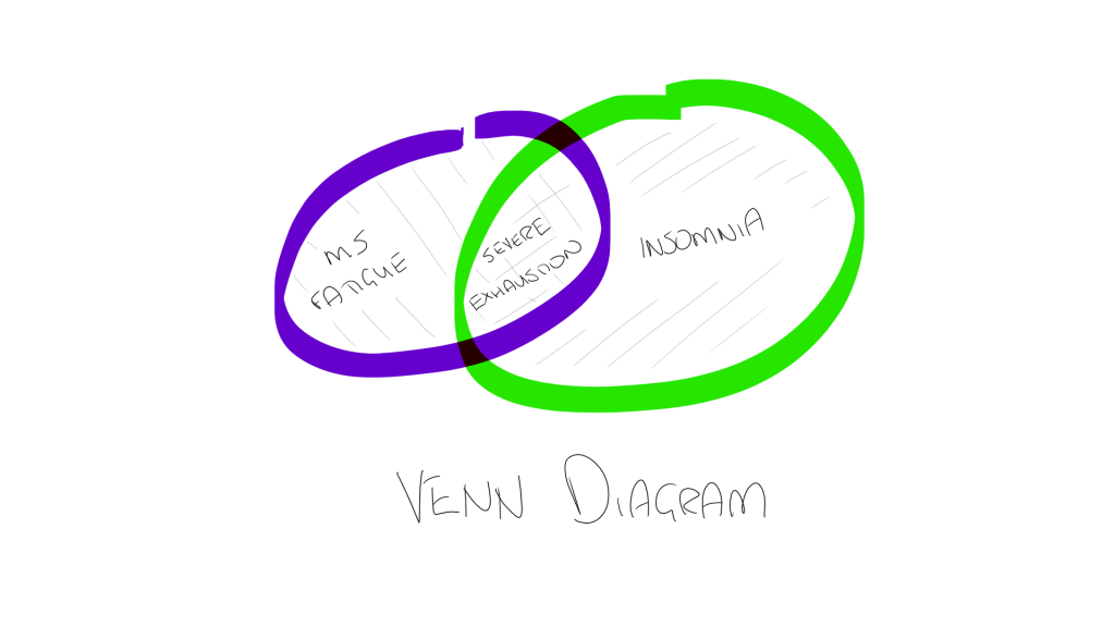 There is an overlap of two issues for me, that of broken, fragmented sleep, and the fatigue which is endemic with MS. The AHSCT can help some people with fatigue, but for me, hasn’t removed the issue. On discussion with my sleep therapist, we are focussing on my sleep issues first, and monitor how the general fatigue is affected.