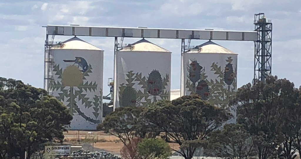 As a complete surprise, the grain silos in Ravensthorpe have been painted, it’s spectacular as you round a bend in the road and see this ahead of you. About 8 or so little towns have had the silos painted, adding a lovely quirky touch to the landscape, while honouring the usage of the land.