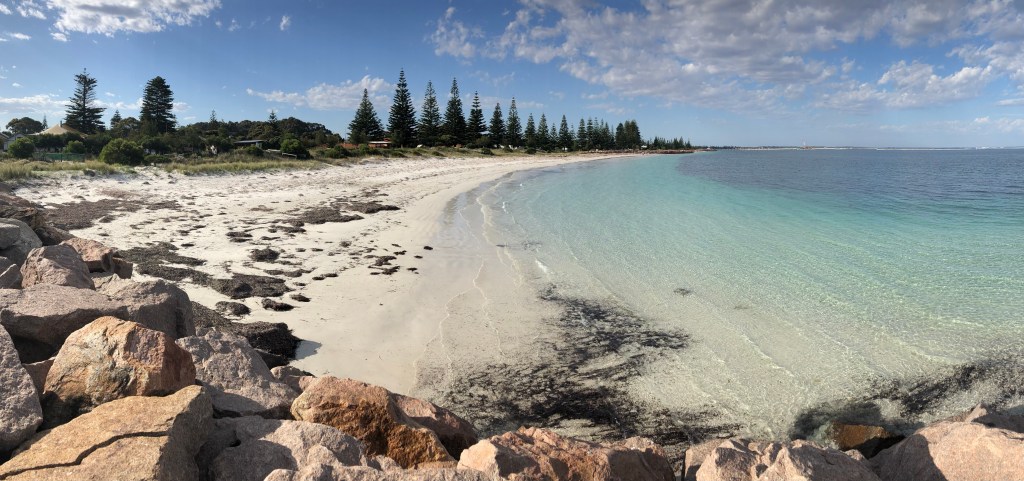 I’m now in Esperance, sitting in my little apartment having been blown off the beach and path by wind and horizontal rain ! Yesterday late afternoon was beautiful down by the shore, this morning not quite as much. These photographs from yesterday, where I seriously considered swimming.