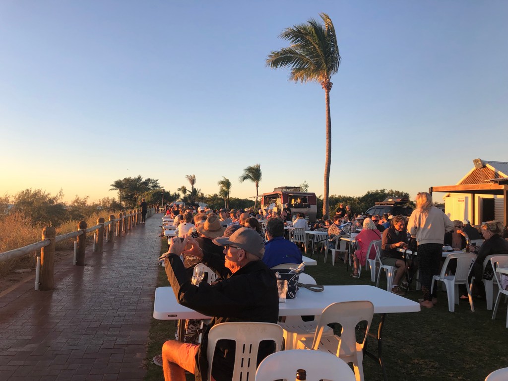 To finish off today, we watched another sunset at Cable Beach from the surf club, with a beer and curry from a food van. A welcome change from meting out in cafes and restaurants for the last few days. A peaceful, mellow atmosphere of backpackers, grey nomads, tourists and locals, all relaxing in a beautiful spot.