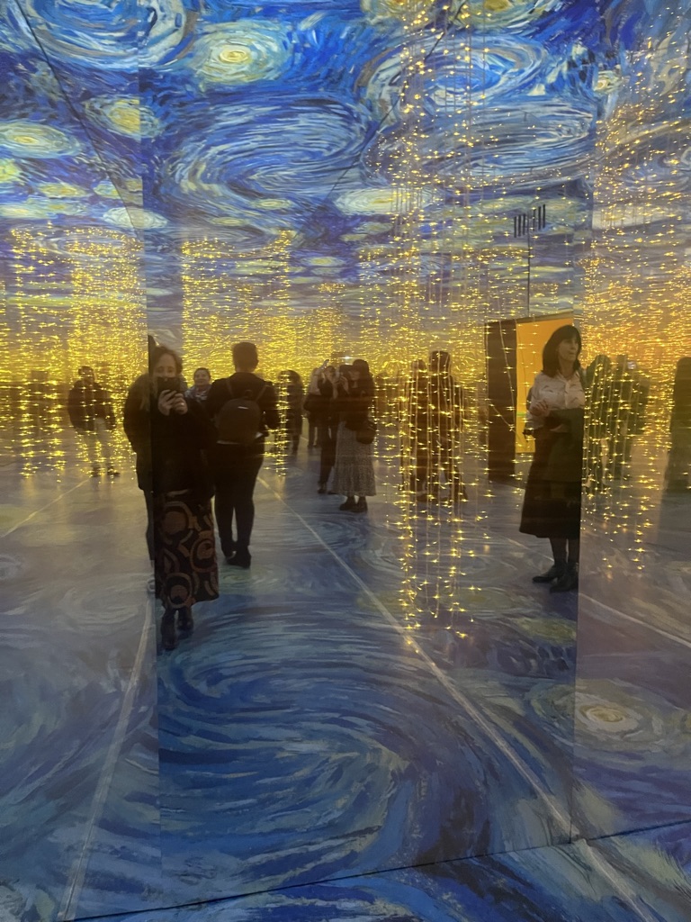 The exhibition was a multi media immersive experience, walking through fields of sunflowers and light installations, with the main exhibition a large hall with his paintings shown on the walls, to a narrated sound track with classical music, and photographs of the locations. Really well done, I’d recommend it to anyone interested in Van Gogh. A pleasant if rather cool evening in our lovely city.