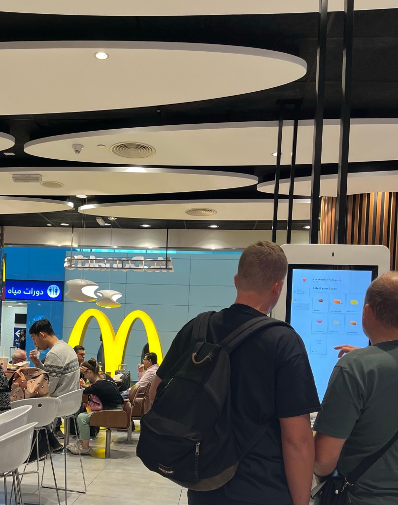 Sitting now in Dubai airport, in McDonalds as they have power points there for phone chargers. I don’t really feel guilty for not ordering anything, as the queue is huge even though the cafe isn’t that busy.