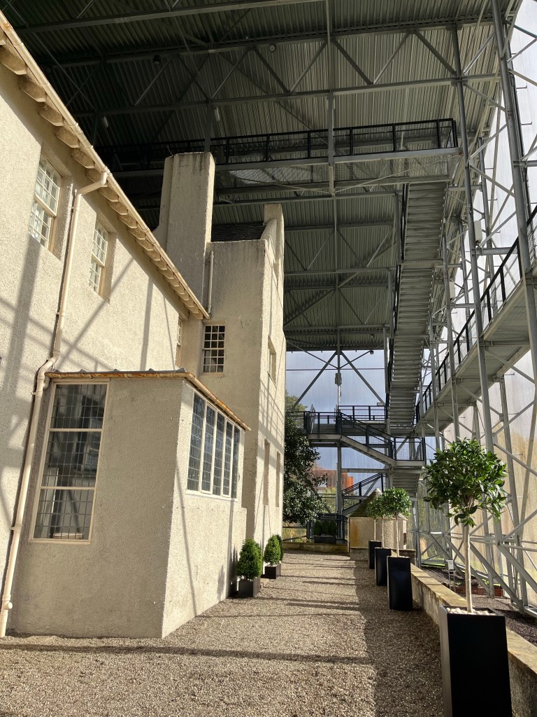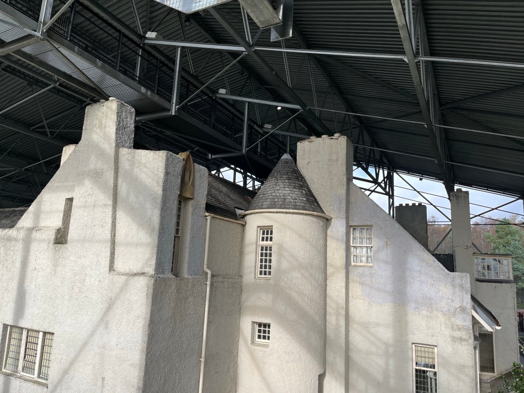 A Rennie Mackintosh designed house, suffering from the damp so encased in its box while they work out the restoration.