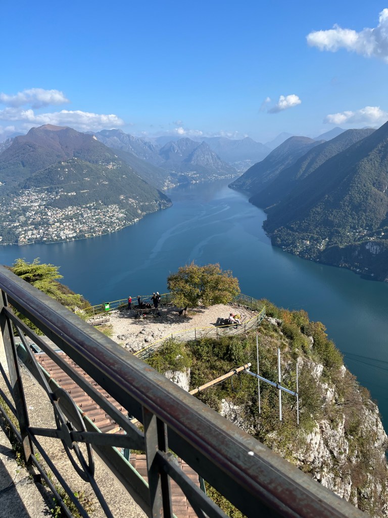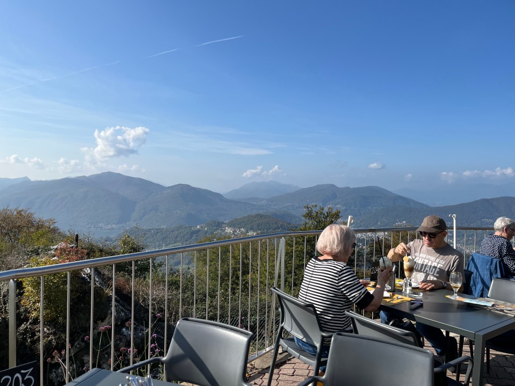 The access up Mount San Salvatore was by funicular, to a rather lovely cafe/ restaurant at the top with views over the lakes to Italy.