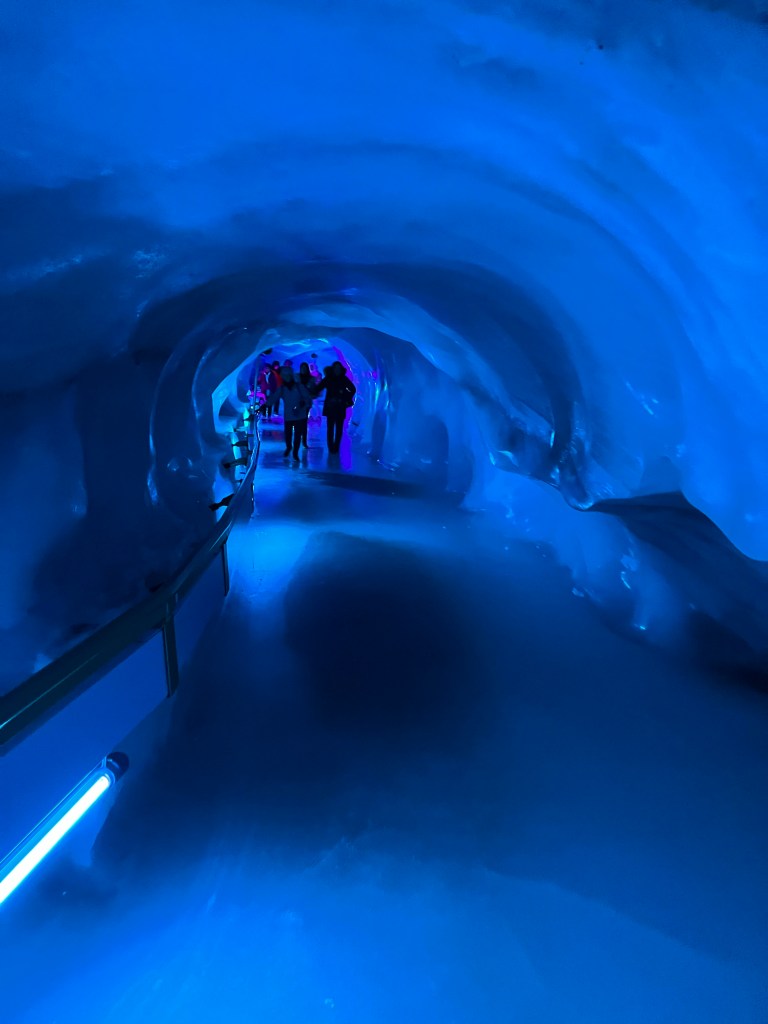 The experience, and sheer fun, of walking inside a glacier then over a swing suspension bridge over the glacier, was exhilarating.