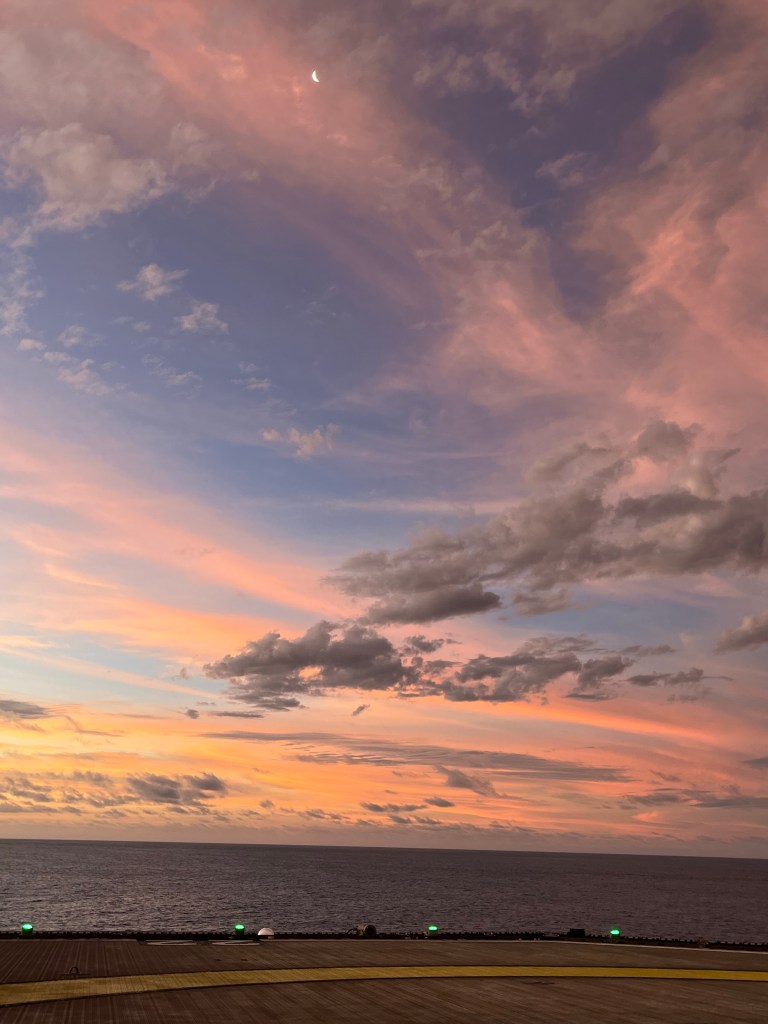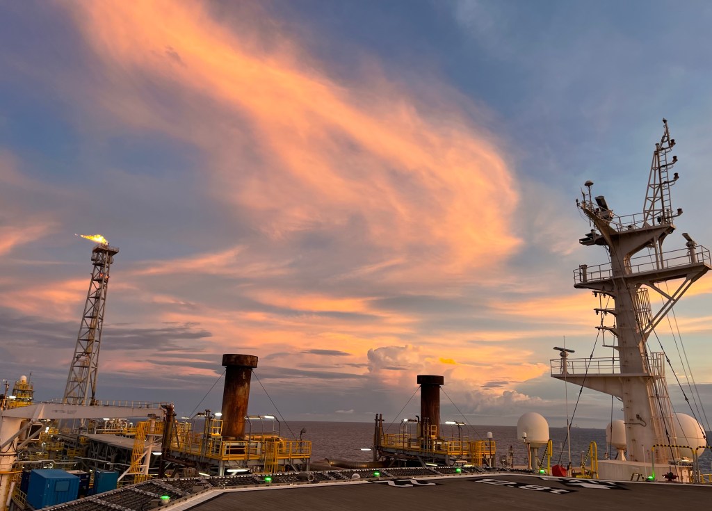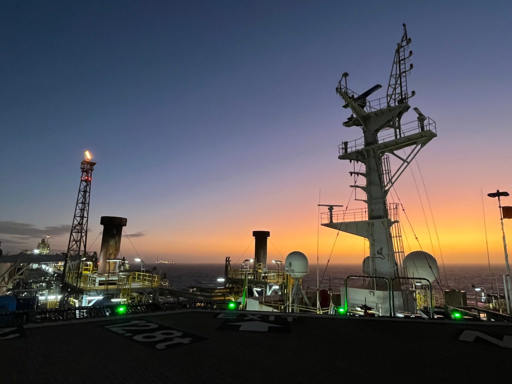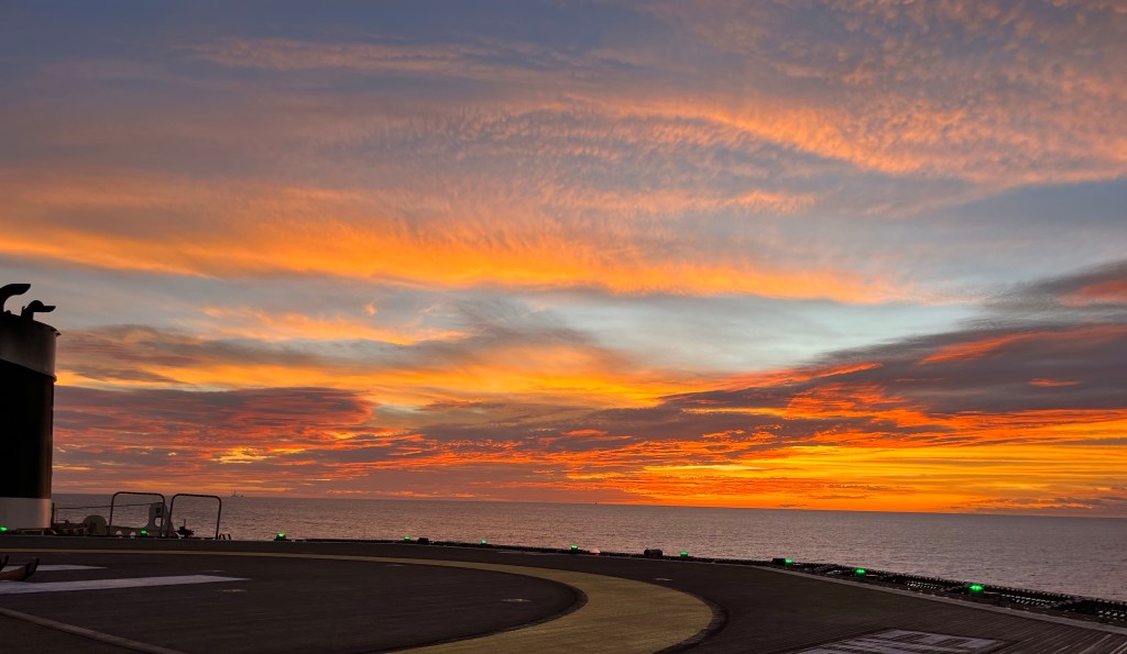 Yoga on the helideck, well more like a bit of stretching while enjoying being immersed in the beautiful sunsets, not a bad way to unwind after busy days.