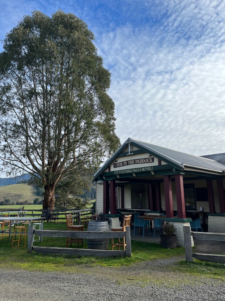The drive up from St Helen’s on the east coast to Launceston took us down a stunning valley to find a dairy and cheese factory. Turned out the dairy was closed, but we found the most spectacular walk and waterfall at the end of the valley, then a pub in a paddock with a beer drinking pig !