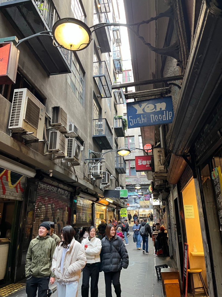 From country Tasmania, to big city Melbourne. Trams and people, skyscrapers and bustling shops, packed restaurants and art galleries, such a change and a bit of a shock after a peaceful and very rustic week.