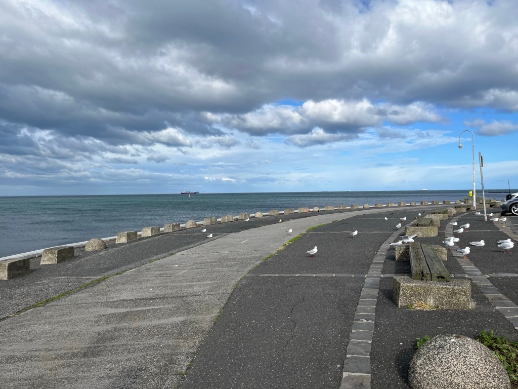 A ferry to Williamstown, through the port the size of which I really hadn’t appreciated, followed by a walk looking at the wind blown expanse of Port Phillip Bay. A meal after all the walking in a cosy Italian, with superb food and a good bottle of wine.