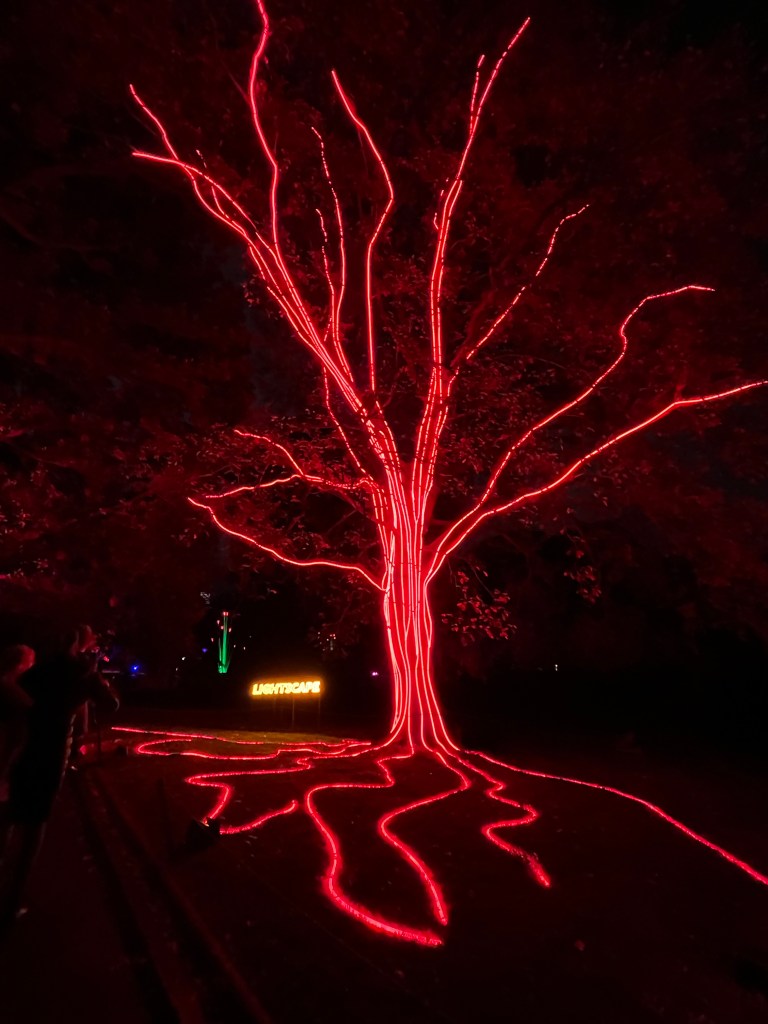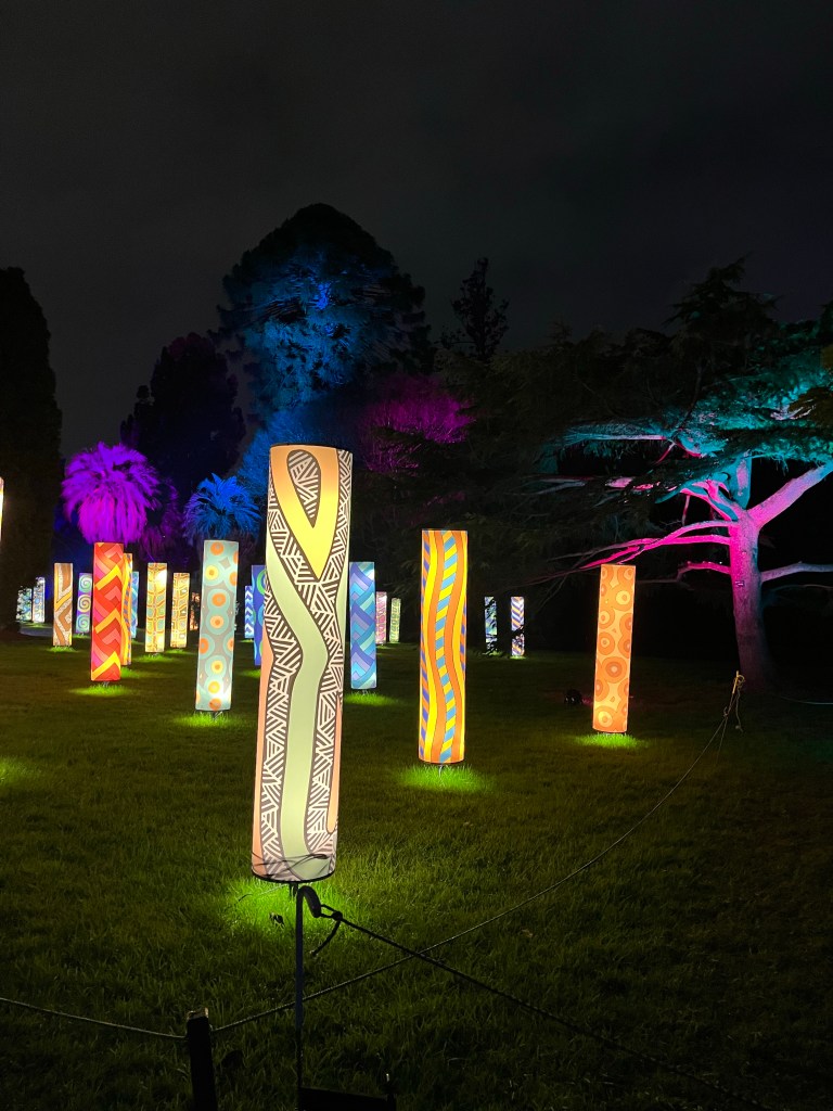 And the same day as the Rembrandt exhibition, a light show in the Botanic Gardens after dark. Food vans and mobile bars serving Prosecco on tap, with cool art works which owed just a little bit to Avatar. A lovely end to a couple of days although we were happy to get out of the drizzle which set in as we were walking around.
