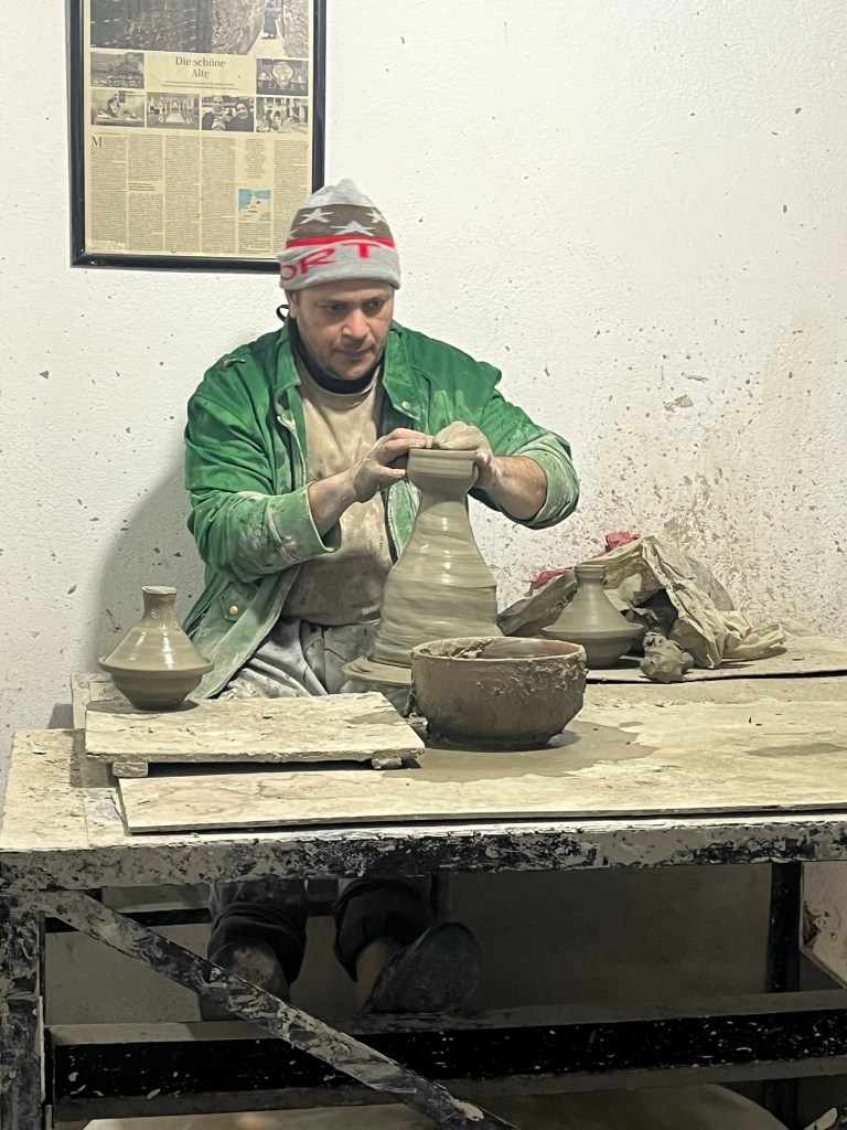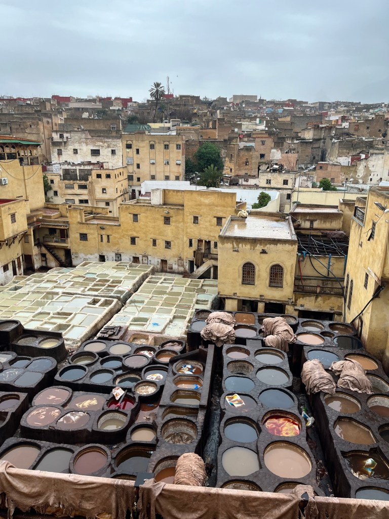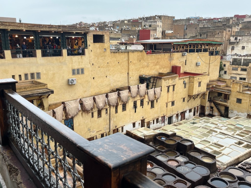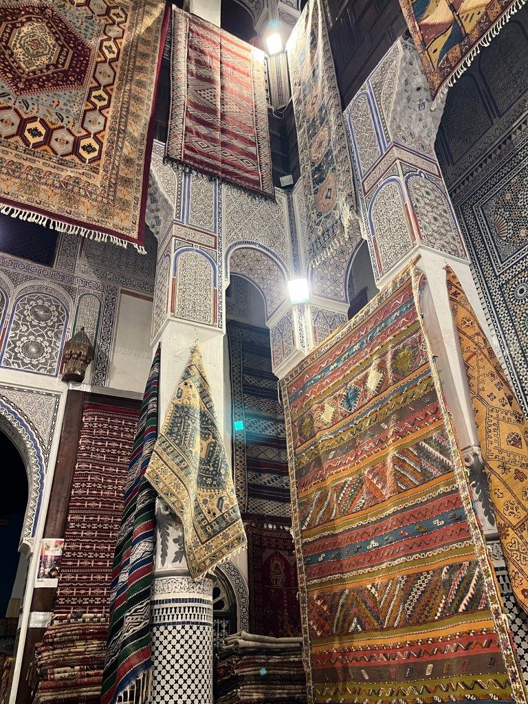 As it’s a rainy Friday ( the Muslim day off), the Medina was so quiet, so while we didn’t get the full immersive experience we had a strangely peaceful experience. We visited stalls, looked at a pottery place, admired rugs, smelt the tannery and generally wandered around like obedient sheep following our guide.