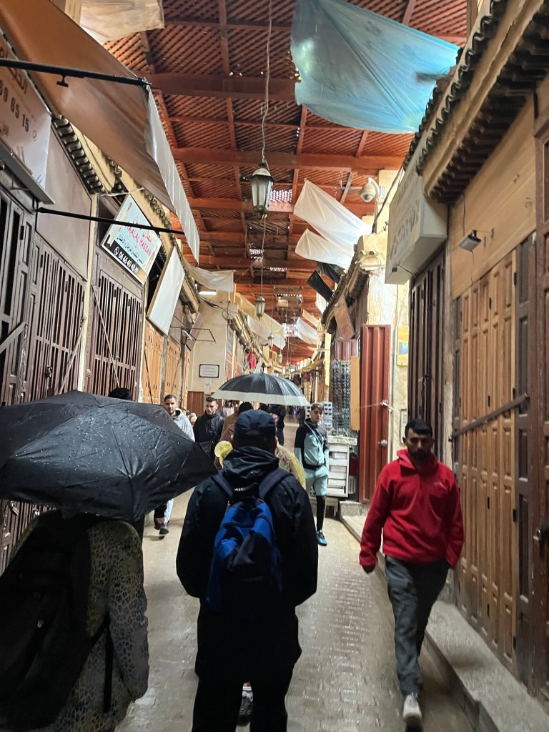 After a rather nice lunch in a beautiful riad, and a trip back to the hotel to dry out, Lisa and I headed back to the medina for a hammam experience. No photos but it was lovely, a massage then rinse off, body scrub then clay mask, then full wash off all in an intricately tiled space. The walk home in the rain didn’t destroy the mellow feeling from mint tea and massage.