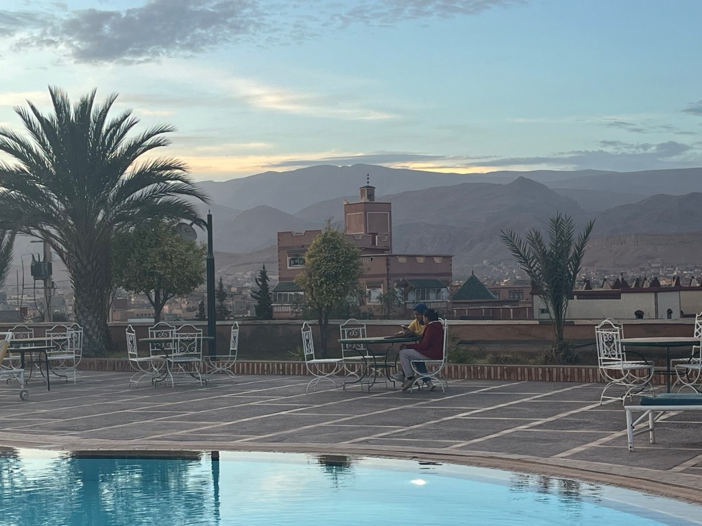 A hotel of faded glory on the top of a hill, with a freezing cold swimming pool and amazing views.