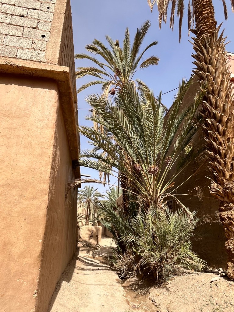 We travelled from Tata to Mirleft today, around 6 hours of driving with one stop only at a small village to walk through the day palms. It was a tough day, and must have been so hard for Lassen our driver, as we drove for a couple of hours through a thick sandstorm.