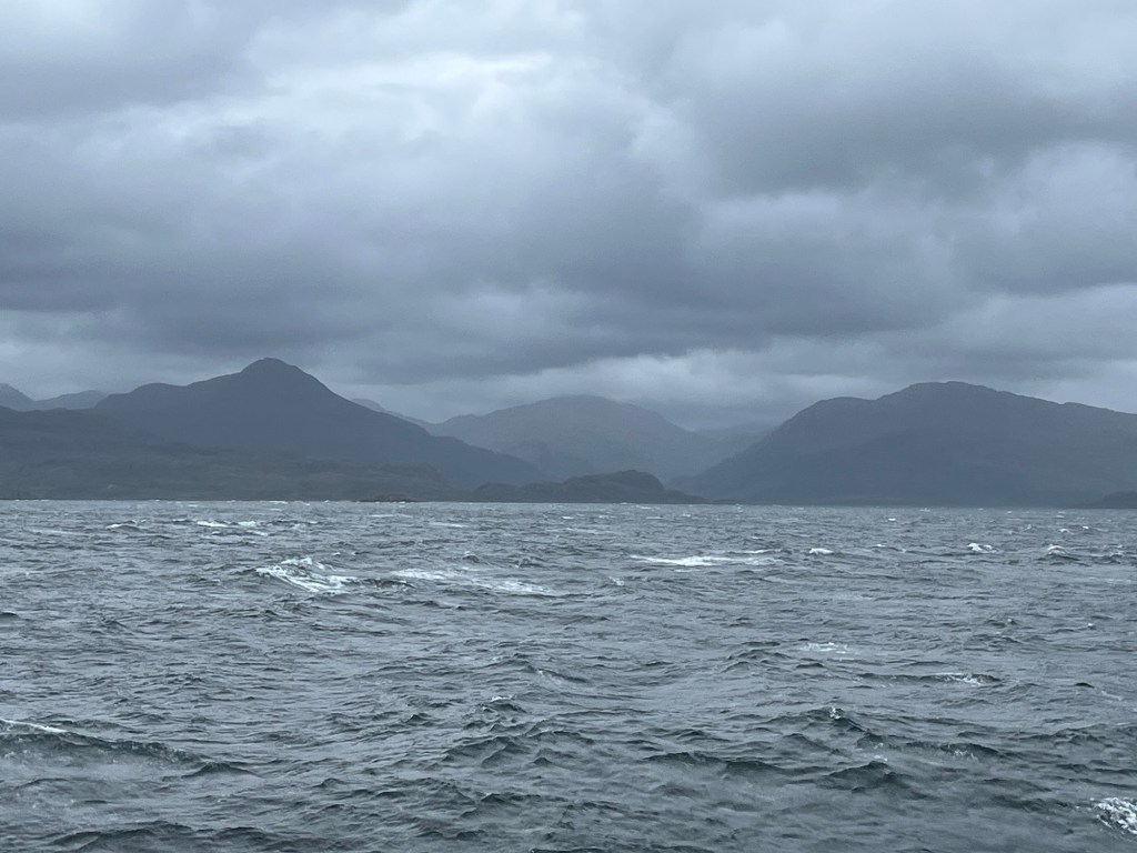 A wild and exhilarating ferry trip from Skye to Mallaig, spent up on the open observation deck watching waves and swell breaking over the ferry.